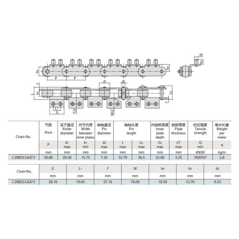 - Vakaa ja tehokas toiminta:Optimoitu hammaspyörä ja tukirakenne takaavat ketjun vakaan liikkeen raskaassa kuormituksessa ja suurella nopeudella.