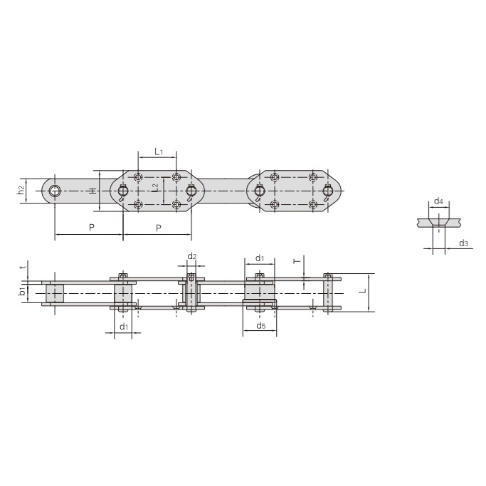 - Korkea vakaus:Jokainen laakeri koostuu tapista ja holkista, jotka mahdollistavat rullien sujuvan pyörimisen. Nivelrakenteinen muotoilu mahdollistaa ketjun kestävän suuria paineita ja iskuja säilyttäen vakauden ja luotettavan kuljetuksen.