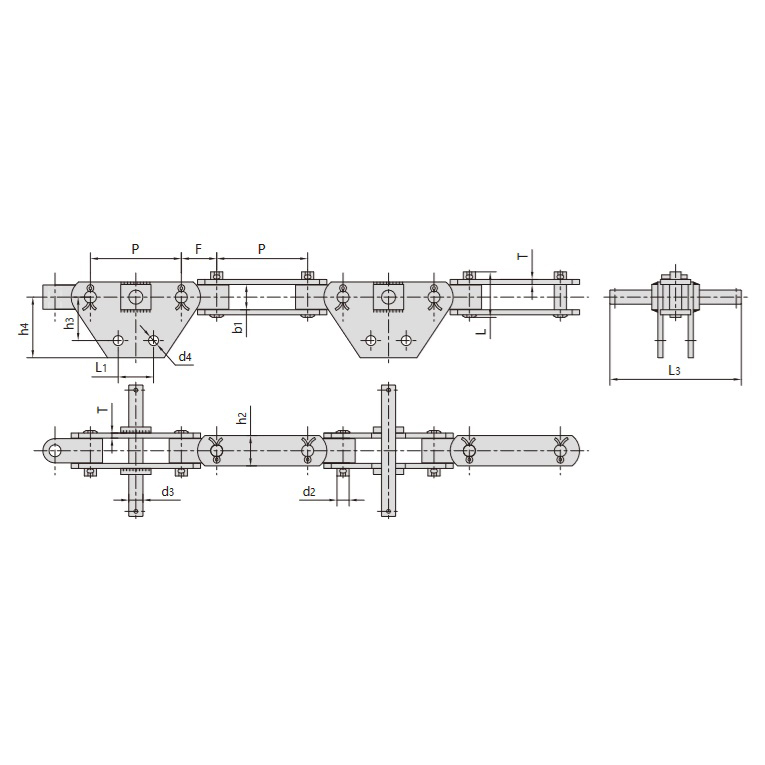 Kaksinkertaisesti nivelletty kuljetinketju on suunniteltu parantamaan joustavuutta ja mukautuvuutta, mikä tekee siitä ihanteellisen monimutkaisiin käyttöympäristöihin ja vaativiin kuormitusvaatimuksiin.