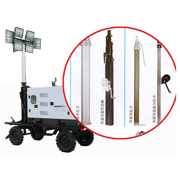 - Nostojärjestelmä: Valotorni on varustettu 3-osaisella teleskooppisylinterillä, joka voi nostaessaan kattaa enintään 35–55 metrin valaistussäteen. Sylintereitä ohjataan pneumaattisella paineella, ja ne tukevat sähköistä tai manuaalista nostamista ja laskemista, ja laskemisen aikana on automaattinen ilmanpaineensuojaus. Käyttäjät voivat myös valita 4-osaisen teleskooppisen valopylvään.