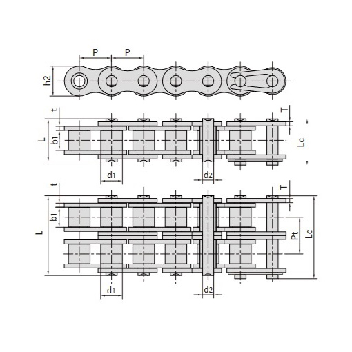 itsestään voiteleva lyhytjaksoinen rullaketju tekninen taulukko